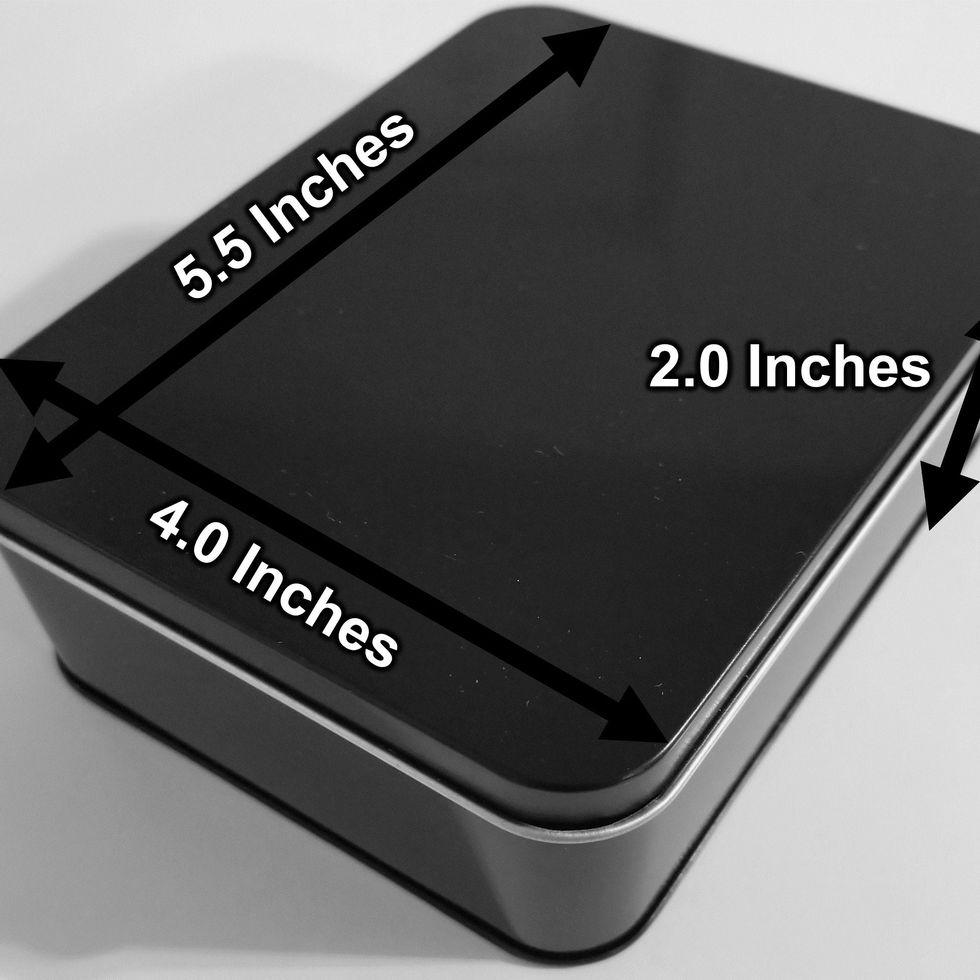 Outside dimensions are 5.5" x 4" x 2" (140mm x 100mm x 50mm). Easily apply stickers to the front and back of the tins for a more personal look.