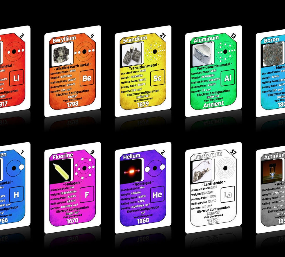 The Periodic Table of Elements Deck is a slick chemistry cheat sheet in your pocket! Dynamically learn about elements with colorful, detailed and informative cards complete with awesome pictures! This deck includes all 118 discovered elements!