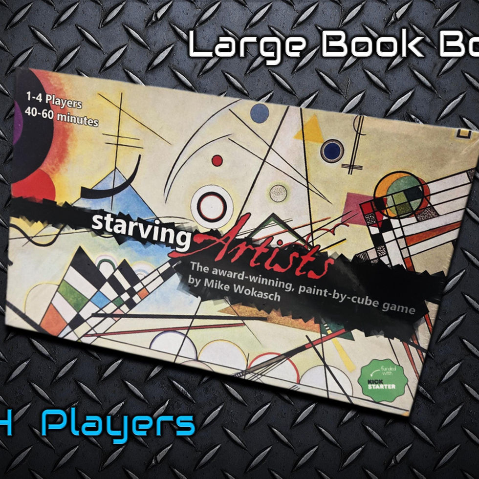 Starving Artists is an award-winning, blind-drafting and resource management game for one to four players. Using some of the world's most beautiful works of art, players complete these masterpieces using transparent cubes in an attempt to become famous artists. It takes about 40-60 minutes (approximately 20 minutes per player).
